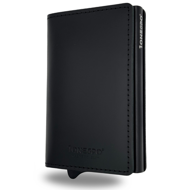 • 1ONESPO® MAGNETIC SLIM, portafoglio in Vera Pelle, Cuoio Cerato Nero, cuciture tono su tono